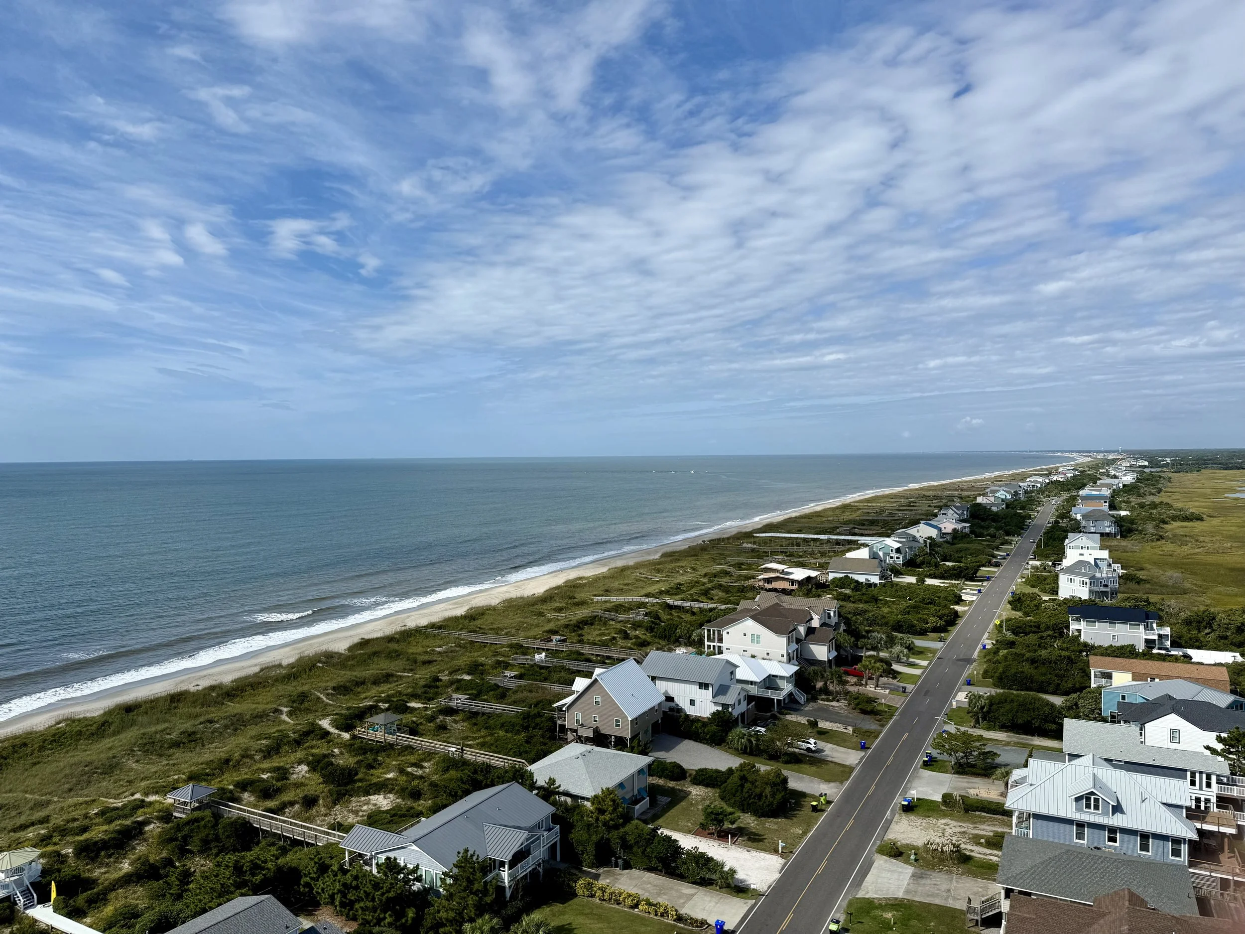 The view was breathtaking. I could see so much ocean, its waves breaking against the sandy beach. The sky was a beautiful blue streaked with wisps of white cumulus, cirrus, and stratus. The air was light and salty. I could see from one side of the island to the other. I could even see my family’s (rental) house from there!