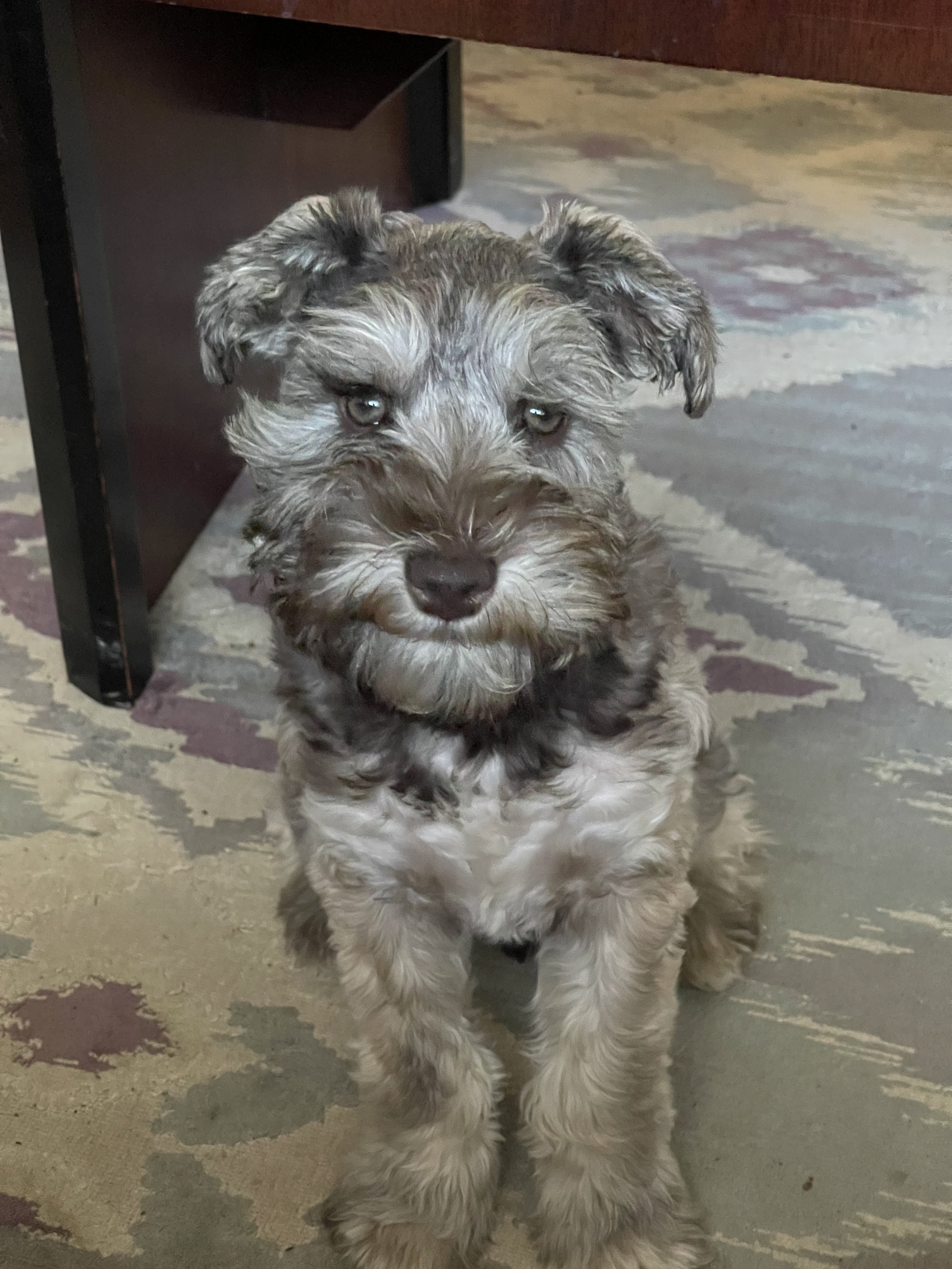 And jump in I did. I visited the breeder and met the puppy. Then, on Christmas Eve 2022, I took him home. Samwise the nine-week-old miniature schnauzer puppy toddled into the house and began a new life for himself, me, and my roommate (who has helped a lot with caring for him when I’m unavailable).
